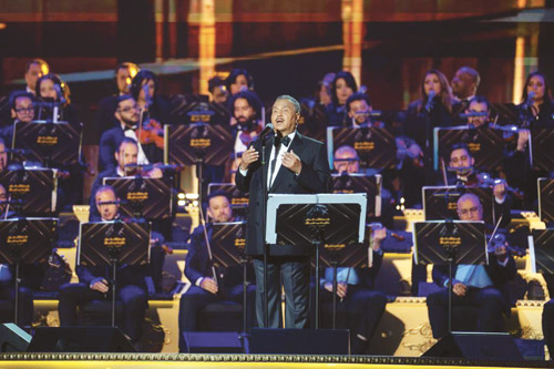 «صوتك يناديني» كانت أولى الأعمال التي قص بها شريط حفلة الجمعة، وكأنه يخاطب جمهوره الكبير ومحبيه من خلف الشاشات، لتنطلق بعدها عشرة أعمال غنائية، لخصت بطابع الحنين والحل والترحال في عالم مفعم بالأمنيات والرقي، في صوت الأغنية السعودية، كان للمسرح قصة أخرى وأيقونة أنيقة وفاخرة بالتجهيزات المميزة التي حظي بها لتكون ليلة تليق بفنان العرب.
