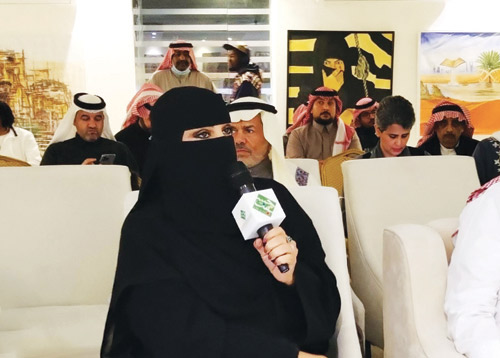 وفي كلمة للدكتورة منال الرويشد رئيس مجلس إدارة الجمعية السعودية للفنون التشكيلية رحبت بسمو الرئيس الفخري وبفارس الأمسية الدكتور صالح الشادي وبمديرها الإعلامي القدير هاني شحيتان وبجميع الشخصيات الثقافية والأدبية والفنية الحاضرة للأمسية، وقالت: (هذه ليلة استثنائية بالفن والشعر والثقافة باستضافة رمزين مميزين جداً رمزان من رموز الثقافة والإعلان والفن، الدكتور صالح الشادي والأستاذ هاني الشحيتان، القصيدة واللون كلاهما نص بصري ونص مكتوب اجتمعا في شخصية قامة وطنية هي الدكتور صالح الشادي، رسالتنا الثقافية الفكرية من هذه الأمسية أردنا أن تصل للجمهور أن هذا الشاعر الوطني المميز هو فنان تشكيلي أيضاً وقد بدأ بالرسم قبل الشعر منذ طفولته).
