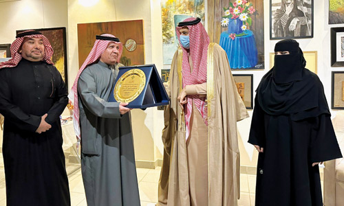 وفي نهاية الأمسية كرم صاحب السمو الملكي الأمير د. فيصل بن محمد بن سعود الرئيس الفخري للجمعية والدكتورة منال الرويشد رئيس مجل إدارة الجمعية الدكتور صالح الشادي والأستاذ هاني الشحيتان بدروع تذكارية توثق هذا الحدث ليكون ختاماً لعام الشعر العربي عام 2023 وارتباط الشعر بالفن التشكيلي وتمثّل هذا الارتباط بشخصية الشاعر القدير والفنان التشكيلي الدكتور صالح الشادي.