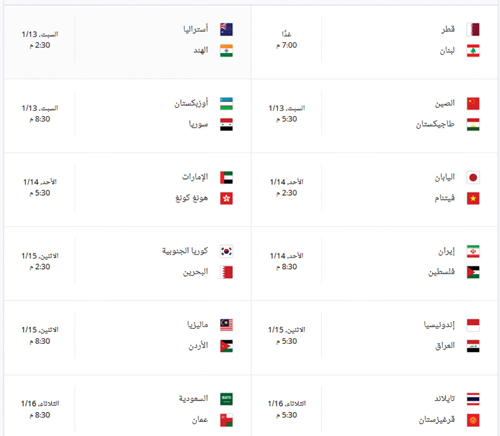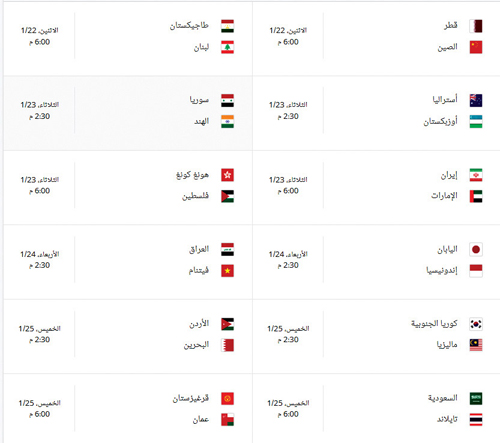 تنطق مساء اليوم الجمعة البطولة الآسيوية ( كأس الأمم الآسيوية) في نسختها الثامنة عشرة والتي تستضيفها العاصمة القطرية الدوحة التي سبق لها استضافة النسخة الأخيرة من نهائيات كأس العالم وسبق لها كذلك استضافة النهائيات الآسيوية مرتين من قبل، وستكون الافتتاحية على استاد لوسيل في اللقاء الذي سيجمع حامل اللقب والمنتخب المستضيف قطر مع المنتخب اللبناني في مواجهة قوية في الافتتاح سيكون المنتخب القطري الأكثر حرصاً على تحقيق الفوز لبدء حملة الدفاع عن لقبه الذي حققه في النسخة الماضية 2019، واستعد الفريق القطري بشكل جيد وسيقابل المنتخب المتطور اللبناني الساعي لبدء مشواره بنتيجة جيدة ينافس من خلالها على بطاقة التأهل عن المجموعة.