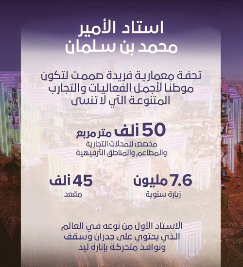 الإستاد الجديد سيكون واحداً من أبرز الملاعب في العالم، وسيزوّد بتقنيات وإمكانات غير مسبوقة تجعله متعدد الاستخدامات، وقادراً على استضافة أكبر الأحداث الرياضية والترفيهية والثقافية في المملكة العربية السعودية.