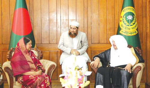 على صعيد متصل عقد رئيس مجلس الشورى في العاصمة البنغالية دكا أمس جلسة مباحثات رسمية مع معالي رئيسة البرلمان البنغلاديشي الدكتورة شيرين شارمين شودري، وذلك بمقر البرلمان في دكا. وفي مستهل جلسة المباحثات رحبت الدكتورة شيرين شودري برئيس مجلس الشورى والوفد المرافق بمناسبة زيارته إلى جمهورية بنغلاديش الشعبية، مؤكدة أهمية تعزيز العلاقات ولاسيما البرلمانية منها لما فيه خير للبلدين والشعبين. وأكدت رئيسة البرلمان، أهمية دعم وتعزيز العلاقات التي تربط جمهورية بنغلاديش الشعبية والمملكة العربية السعودية، ودعم التعاون القائم والمشترك في مختلف المجالات، مشيدة بالجهود الكبيرة التي تقوم بها المملكة بقيادة خادم الحرمين الشريفين الملك سلمان بن عبدالعزيز آل سعود، وصاحب السمو الملكي الأمير محمد بن سلمان بن عبدالعزيز ولي العهد رئيس مجلس الوزراء -حفظهما الله-، مقدمةً شكرها للمملكة على جهودها الكبيرة في خدمة الإسلام والمسلمين.