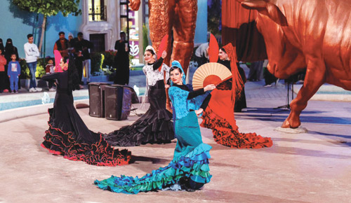 نثرت منطقة بوليفارد ورلد في «موسم الرياض»، فنونها على الزوار ورسمت البهجة من خلال المناطق الفرعية المنوعة. وبرزت منطقة «إسبانيا» في أنماط العمارة التي تعيد الزوار إلى العصور القديم وتحولت اللحظات في المنطقة إلى مهرجان من الفرح، من خلال رقصات الفلامنكو التي يؤديها الراقصون البارعون، فيما تضج الأسماع بأنغام موسيقى «الفاندانغو» بقيثاراتها وصنوجها الخشبية. وقدمت المنطقة الإسبانية فنوناً رائعة وسط تفاعل كبير من الزوار. ورسمت المنطقة الشامية فناً من فنون الدبكات الشامية العريقة الشهيرة في منطقة الشام وبعضاً من الأنغام الشامية الفرائحية التي تعنى بالترحيب في الزوار إذ تعد المنطقة واحدة من المناطق الحديثة إلى جانب المنقطة التركية. وأبدعت المنطقة المغربية في فنون اختزلت عجائب القارتين لما تمثله من تعدد للثقافات وتنوع للتأثيرات الجغرافية الناتجة عن موقع البلد بين قارتي أوروبا وإفريقيا، وحدوده الجنوبية مع الصحراء، حيث قدمت فناً من فنون الترحيب بالزوار مصحوباً بالدف والتصفيق من بينها موسيقى «الراي» التي تعد موسيقى من الفلكلور المغربي. وحظيت منطقة اليونان بتقديم عروض موسيقية وفنية مذهلة، تعود لمئات الحقب الزمنية التي أسرت الزوار على المدرج الروماني بفرقة استعراضية يونانية رائعة، وقدمت منطقة الصين عروضاً شعبية صينية تعنى بالترحيب بالزوار بالإضافة إلى جانب من عروض موسيقى الضيافة الصينية. وينغمس الزائر في تجربة المنطقة الهندية بين المناظر المدهشة بين الرقصات المتناسقة والموسيقى المبهجة والألوان الباهرة، من خلال مسرح مصغر في المنطقة يستعرض فنوناً شعبية هندية ومبسطة تعنى بالتراث الهندي. واستعرض مسرح المنطقة الآسيوية ما يقارب ثمانية عروض موسيقية منوعة من بينها عروض قتالية، تعنى بلعبة الجودو المشهور في قارة آسيا.