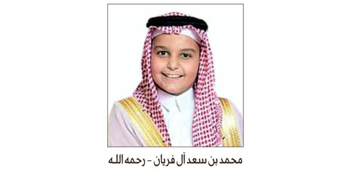 وقد شاء الرحيم الحكيم جل وعلا أن يبتلينا بفقد ثمرة فؤادي ابننا الغالي محمد بن سعد بن عبدالعزيز آل فريان -رحمه الله-، ذي الاثني عشر ربيعاً في ليالي شهر رمضان المنصرم عام 1444هـ بعد مرض ألمّ به ولازمه طويلا ونحسبه والله حسيبه إلى ساعة قبضه وارتقاء روحه لبارئها ممن نشأ على طاعة الله وبذل المعروف وحب المساكين والإشفاق عليهم، فكان في رمضان يتصدق بما جمعه على فقراء الحرم رغبة منه وتقربا لمولاه، تقبل الله منه في الأجر والثواب واغتنام الأيام الفضيلة،وليس المقال لحصر ما له من مآثر وإنما للعظة والاعتبار لنا أولاً ولمن يقرأ المقال موعظة اختصارها أن لا شيء في الدنيا دائم غير العمل الصالح، وأن ما يبقى للفقيد بعد رحيله غير الذكر الحسـن وأياديه البيضاء ومحاسنه التي تبقى رصيداً لـه يوم لا ينفع مال ولا بنون إلا من أتى الله بقلب سليم!!