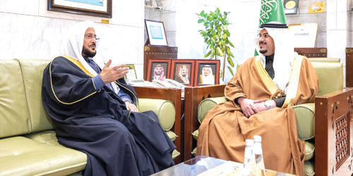 استقبل صاحب السمو الملكي الأمير فيصل بن بندر بن عبدالعزيز أمير منطقة الرياض في مكتبه بقصر الحكم أمس معالي وزير الشؤون الإسلامية والدعوة والإرشاد الشيخ الدكتور عبداللطيف بن عبدالعزيز آل الشيخ. واستمع سموه إلى شرح عن جهود الوزارة في الاهتمام بشؤون المساجد والمصليات، وتوجيه الناس بالحكمة ونشر مفاهيم الوسطية والاعتدال. وقدم آل الشيخ، شكره وتقديره لسمو أمير منطقة الرياض لاهتمامه وحرصه على دعم أعمال الوزارة في المنطقة. كما استقبل صاحب السمو الملكي الأمير محمد بن عبدالرحمن بن عبدالعزيز نائب أمير منطقة الرياض، في مكتبه بقصر الحكم أمس معالي وزير الشؤون الإسلامية والدعوة والإرشاد الشيخ الدكتور عبداللطيف بن عبدالعزيز آل الشيخ. واطلع سموه، على جهود الوزارة في الاهتمام بشؤون المساجد والدعوة ونشر الوسطية والاعتدال. وقدم آل الشيخ، شكره وتقديره لسمو أمير المنطقة وسمو نائبه لاهتمامهم ودعمهم أعمال الوزارة في المنطقة.