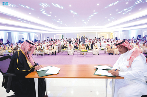 رعى صاحب السمو الملكي الأمير فيصل بن بندر بن عبدالعزيز أمير منطقة الرياض، أمس حفل أهالي محافظة حريملاء بمناسبة جولة سموه التفقدية وتدشين عدد من المشروعات التنموية، وذلك في قاعة الاحتفالات بالمحافظة. وأعرب سموه، في كلمة له بهذه المناسبة عن سعادته بزيارة محافظة حريملاء والالتقاء بالأهالي والوقوف على المشروعات التنموية القائمة والمستقبلية التي تأتي وفق توجيهات القيادة الرشيدة - حفظها الله -، سائلاً سموه المولى جل وعلا التوفيق للعاملين بمحافظة حريملاء في ما يقدمونه من أعمال لخدمة المليك والوطن.وقال: اليوم اطلعنا على الكثير من المشاريع المقررة لمحافظة حريملاء، وأرجو- إن شاء الله- أن تجد طريقها إلى النور قريبًا»، معربًا عن سعادته بتكريم المتفوقين علميًا من أبناء وبنات المحافظة. وكان الحفل المعد لهذه المناسبة قد بدأ بالقرآن الكريم، عقب ذلك ألقى الدكتور عبدالرحمن بن سليمان العريني، كلمة أهالي محافظة حريملاء، رحب فيها نيابة عن أهالي المحافظة والمراكز التابعة لها بزيارة سمو أمير المنطقة، مشيراً إلى أن هذه الزيارة تأتي تأكيداً على حرص حكومة خادم الحرمين الشريفين وسمو ولي عهده الأمين - حفظهما الله - على تتبع وتوفير أرقى الخدمات للمواطنين والمقيمين بالمملكة. وقال: إن الجميع مدرك بأن زيارة سموكم ما هي إلا تعرّف على الواقع وتفقد وتلمس احتياجات المواطنين، مؤكدا أن هذه الزيارة سيكون لها الأثر الكبير في تنمية وتطور المحافظة ومراكزها. عقب ذلك شاهد سموه، والحضور عرضاً مرئيًا حول المحافظة، ثم تشرف النحال عبدالمجيد الزوير بالسلام على سمو الأمير فيصل بن بندر، بمناسبة حصوله على عدد من الجوائز العالمية في مجال جودة العسل المستخرج من شعيب حريملاء. بعدها ألقيت قصيدة شعرية بهذه المناسبة، إثرها قدم مجموعة من طلاب وطالبات المحافظة أوبريتًا بعنوان (يا مملكتنا عانقي هام الأمجاد) بمناسبة زيارة سموه. وشهد سمو أمير منطقة الرياض، توقيع اتفاقية إنشاء مبنى معهد التدريب التابع لجمعية حريملاء الخيرية بالمحافظة، ثم دشن سموه عددًا من المشروعات بالمحافظة أبرزها (مركز صحي القرينة، ومبنى جمعية التنمية الأهلية بالمحافظة، ومبنى مكتب الدعوة والإرشاد وتوعية الجاليات بالمحافظة، وحديقة الشلال). عقب ذلك كرم سموه، الفائزين بجائزة حريملاء للتفوق في دورتها الحادية عشرة للعام 1445هـ.