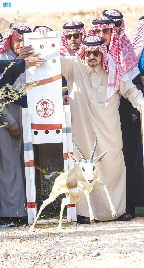 كما زار صاحب السمو الملكي الأمير فيصل بن بندر بن عبدالعزيز أمير منطقة الرياض، منتزه حريملاء الوطني (الشعيب)، وذلك خلال زيارة سموه التفقدية التي قام بها أمس لمحافظة حريملاء والمراكز التابعة لها، وتدشين عدد من المشروعات التنموية. وكان في استقبال سموه لدى وصوله مقر المنتزه، محافظ حريملاء عبدالرحمن الغملاس، وأعضاء المجلس المحلي. عقب ذلك أطلق سموه، عددًا من الغزلان (ضباء الريم) في نطاق المنتزه، وذلك دعماً من سموه لتنمية الحياة الفطرية والتنوع الأحيائي واستعادة التوازن البيئي بالمحافظة. ثم قام سمو أمير منطقة الرياض بزراعة شتلة (طلح بري)، وذلك ضمن مشروع المركز الوطني لحماية الغطاء النباتي ومكافحة التصحر في المنتزه. وكان قد وصل صاحب السمو الملكي الأمير فيصل بن بندر بن عبدالعزيز أمير منطقة الرياض، أمس إلى محافظة حريملاء في زيارة تفقدية لسير العمل بالمحافظة والمراكز التابعة لها، ودشن عددًا من المشروعات التنموية. وكان في استقبال سموه لدى وصوله مقر المحافظة الإداري، محافظ حريملاء عبدالرحمن بن عبدالله الغملاس، ورؤساء المراكز ومديرو القطاعات الحكومية في المحافظة.