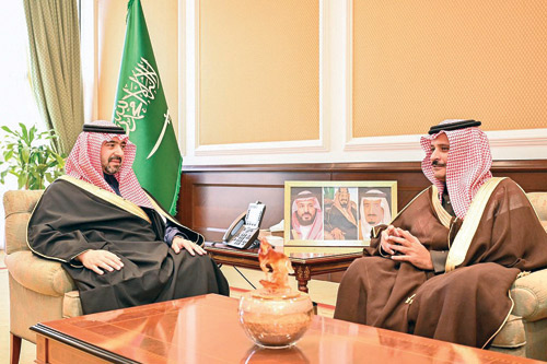 كما استقبل سموه في مكتبه أمس رئيس مجلس إدارة جمعية التنمية الأسرية بالمنطقة جمال بن سداد الفاخري وأعضاء مجلس الإدارة.