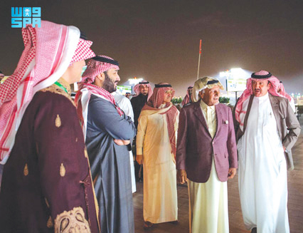 وقد وصل بمعية سمو ولي العهد، صاحب السمو الملكي الأمير سلمان بن سلطان بن عبدالعزيز أمير منطقة المدينة المنورة، وصاحب السمو الملكي الأمير تركي بن محمد بن فهد بن عبدالعزيز وزير الدولة عضو مجلس الوزراء، وصاحب السمو الملكي الأمير عبدالعزيز بن سعود بن نايف بن عبدالعزيز وزير الداخلية، وصاحب السمو الملكي الأمير عبدالله بن بندر بن عبدالعزيز وزير الحرس الوطني، وصاحب السمو الأمير بدر بن عبدالله بن فرحان وزير الثقافة، وقد عزف السلام الملكي قبيل بدء السباق. بعد ذلك تحركت الجياد المشاركة في السباق من ساحة التسريج إلى ساحة الاستعراض، كما تواجد في ساحة الاستعراض جميع الخيالة المشاركين في السباق.