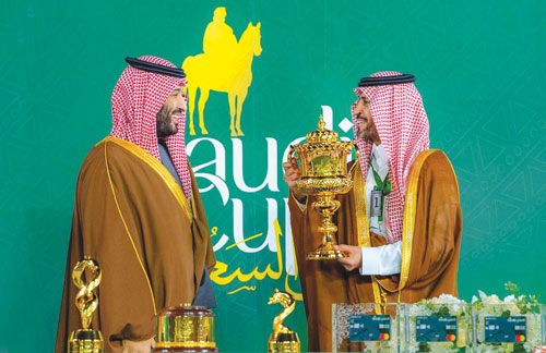 تحت رعاية خادم الحرمين الشريفين الملك سلمان بن عبدالعزيز آل سعود -حفظه الله- شرف صاحب السمو الملكي الأمير محمد بن سلمان بن عبدالعزيز آل سعود ولي العهد رئيس مجلس الوزراء، مساء أمس حفل سباق «كأس السعودية»، وذلك بميدان الملك عبدالعزيز للفروسية في الرياض. وكان في استقبال سمو ولي العهد لدى وصوله صاحب السمو الملكي الأمير بندر بن خالد بن فيصل بن عبدالعزيز رئيس مجلس إدارة هيئة الفروسية، رئيس مجلس إدارة نادي سباقات الخيل، وصاحب السمو الملكي الأمير محمد بن عبدالرحمن بن عبدالعزيز نائب أمير منطقة الرياض، وصاحب السمو الملكي الأمير عبدالعزيز بن تركي بن فيصل بن عبدالعزيز وزير الرياضة، وصاحب السمو الملكي الأمير عبدالله بن خالد بن سلطان بن عبدالعزيز عضو مجلس إدارة نادي سباقات الخيل رئيس اللجان الفنية.