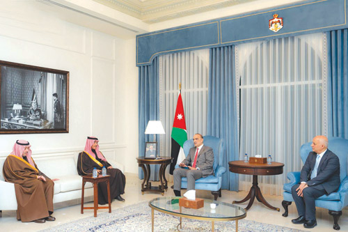 بحث معالي وزير الإعلام الأستاذ سلمان بن يوسف الدوسري، خلال زيارته الرسمية إلى المملكة الأردنية الهاشمية، مع عدد من المسؤولين الأردنيين؛ سبل تعزيز التعاون في المجالات الإعلامية المشتركة القائمة بين البلدين الشقيقين. فقد استقبل دولة رئيس الوزراء الأردني الدكتور بشر الخصاونة أمس معالي الأستاذ سلمان الدوسري، بحضور معالي وزير الاتِّصال الحكومي الأردني الدكتور مهنَّد المبيضين، وسفير خادم الحرمين الشَّريفين لدى الأردن نايف بن بندر السِّديري.وأكَّد الجانبان، عُمق العلاقات الاستراتيجية الأخويَّة والتَّاريخيَّة الوثيقة بين البلدين، التي تعكسها المكانة الخاصَّة والرِّعاية والاهتمام الكبيرين من قيادتي البلدين.وأوضح دولته أنَّ مواقف البلدين تصل حدَّ التَّطابق إزاء مختلف القضايا، ولاسيما القضيَّة الفلسطينيَّة التي يبذل البلدان جهداً كبيراً، وبتنسيق مشترك؛ من أجل إيجاد الحلِّ العادل والشَّامل لها. وثمَّن الخصاونة في هذا الصَّدد الدَّور الريادي للمملكة في العمل على ترسيخ الاستقرار الإقليمي ودعم قضايا الأمَّتين الإسلاميَّة والعربية. كما أشاد بحجم التطوُّر والتَّحديث الذي تشهده المملكة العربيَّة السعوديَّة في العديد من المجالات، والذي يعكسه مستوى التنوُّع الاقتصادي، والتطوُّر السِّياحي، والاهتمام بمجال الإعلام الحديث، مؤكِّداً وجود أوجه كبيرة للتَّعاون بين البلدين في هذه المجالات وغيرها.