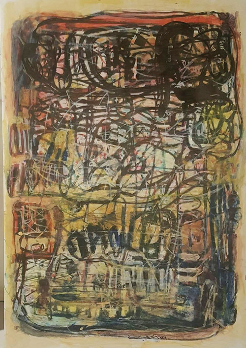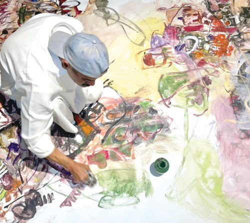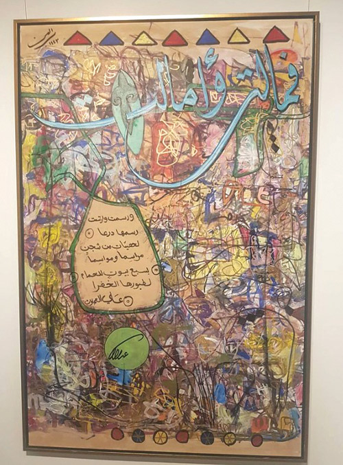 أديب يكتب خواطره، ثم يرسمها، ويراقص معها اللون والتكوين، لترى المعاني تشابكت بين بصيرةٍ وبصر ولتلامس المشاعر والحواس جميعها حتى تصل بكل معانيها.