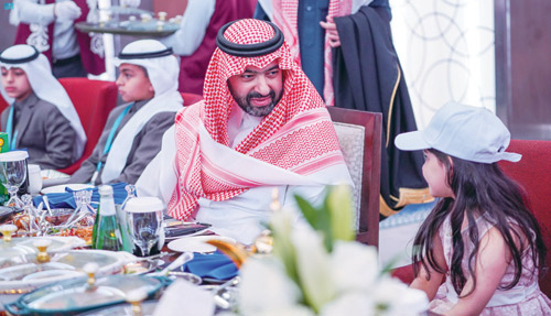 برعاية صاحب السمو الملكي الأمير فهد بن سلطان بن عبدالعزيز أمير منطقة تبوك، شارك صاحب السمو الملكي الأمير خالد بن سعود بن عبدالله بن فيصل بن عبدالعزيز نائب أمير منطقة تبوك مساء أمس عدداً من الأيتام بالمنطقة، مأدبة الإفطار الرمضانية، التي نظمها فرع وزارة الموارد البشرية والتنمية الاجتماعية بالمنطقة، بالشراكة مع شركة نبني المحدودة بالتزامن مع مناسبة اليوم العربي لليتيم، وذلك بفندق جراند ميلينيوم تبوك.