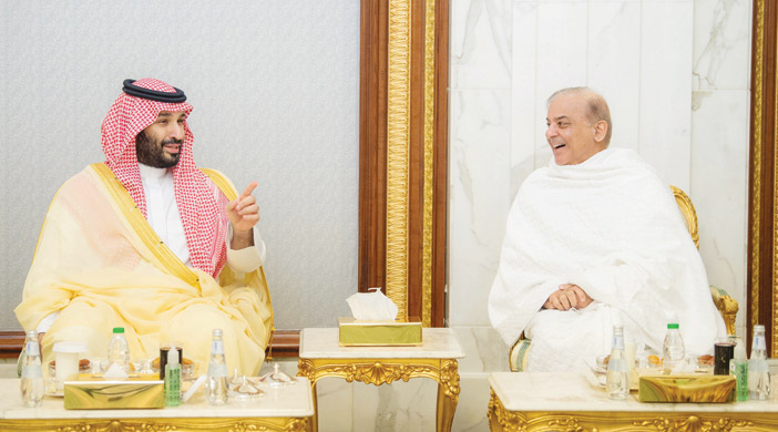 استقبل صاحب السمو الملكي الأمير محمد بن سلمان بن عبدالعزيز آل سعود ولي العهد رئيس مجلس الوزراء - حفظه الله -، في قصر الصفا بمكة المكرمة مغرب أمس دولة السيد محمد شهباز شريف رئيس الوزراء في جمهورية باكستان الإسلامية ، بحضور صاحب السمو الملكي الأمير سلمان بن حمد آل خليفة ولي العهد رئيس مجلس الوزراء في مملكة البحرين.