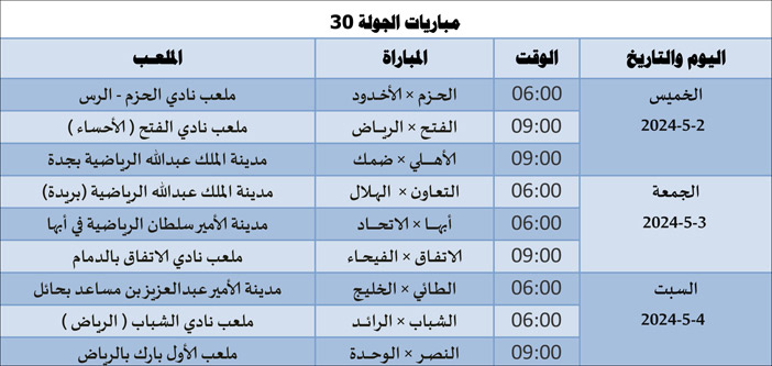 تُفتتح مباريات اليوم بلقاء العربي وضيفه أحد على ملعب إدارة التعليم في محافظة عنيزة.