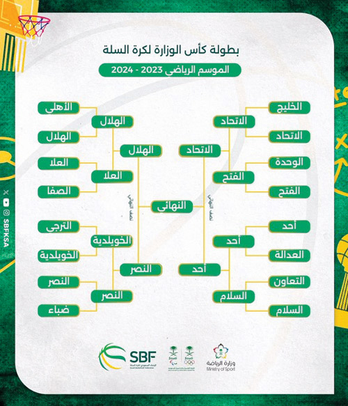 تقام اليوم الخميس مباراتان في الدور النصف النهائي على كأس وزارة الرياضة لكرة السلة. إذ يجمع اللقاء الأول (الهلال) مع (النصر) عند الساعة 6 مساءً على صالة مدينة الأمير محمد بن عبدالعزيز الرياضية في المدينة المنورة. أما اللقاء الثاني فيقام على نفس الصالة إذ يلتقي (الاتحاد) نظيره (أحد) عند الساعة 8 مساءً.