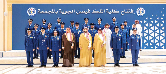 تحت رعاية كريمة من صاحب السمو الملكي الأمير محمد بن سلمان بن عبدالعزيز آل سعود ولي العهد رئيس مجلس الوزراء -حفظه الله- ونيابةً عن سموه الكريم؛ افتتح صاحب السمو الملكي الأمير خالد بن سلمان بن عبدالعزيز وزير الدفاع، مساء أمس الأول، مرافق كلية الملك فيصل الجوية في المجمعة، كما شهد حفل تخريج الدفعة (103) من طلبة الكلية، بحضور نائب رئيس مجلس الوزراء ووزير الدولة لشؤون الدفاع بدولة قطر الدكتور خالد بن محمد العطية، وعدد من أصحاب السمو والمعالي والسعادة، وكبار المسؤولين من الدول الشقيقة والصديقة، وأولياء أمور الخريجين.