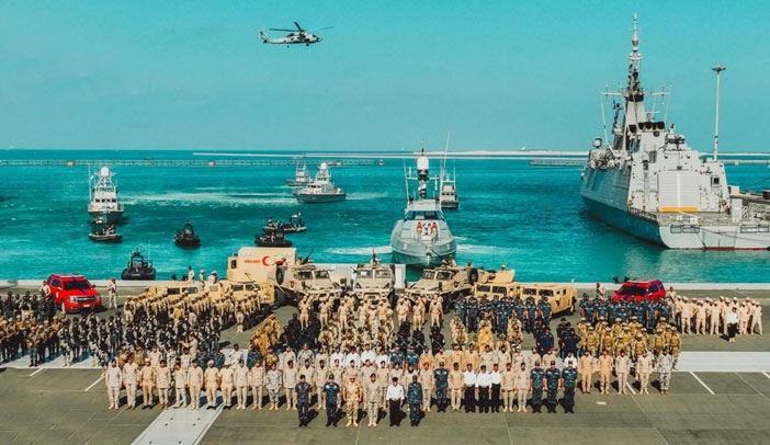 وبين أن القوات المشاركة ستنفذ وتطبق على مدى خمسة أيام كافة المفاهيم العسكرية الحديثة من محاضرات إستراتيجية وتمارين تحاكي بيئات قتالية مختلفة تماثل الواقع لتحقيق العمل المشترك والمختلط مثل: الحروب السطحية والجوية، والحرب الإلكترونية، والتصدي لهجوم بالزوارق السريعة، وكذلك تدريبات الأمن البحري مثل: حماية خطوط الملاحة، ومكافحة التهريب، والإرهاب،والقرصنة والهجرة غير الشرعية، مشيرًا إلى أنه سيتم استخدام العناصر القتالية كافة من خلال «سفن جلالة الملك» والطائرات العمودية وزوارق التصدي السريع ومشاة البحرية وقوات الأمن البحرية الخاصة، إضافة إلى أنواع مختلفة من الطائرات القتالية.