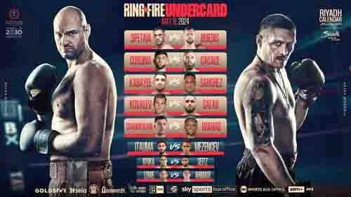 ويُقام نزال (حلبة النار)، الأكبر في عالم الملاكمة، ضمن فعاليات (موسم الرياض)، وتتم متابعته من جماهير الملاكمة في جميع أنحاء العالم، حيث يعد تايسون فيوري وأولكسندر أوسيك هما أفضل ملاكمين في الوزن الثقيل في الوقت الراهن، فبطل العالم للوزن الثقيل في الملاكمة تايسون فيوري، لعب 34 مباراة لم يهزم فيها، بينما فاز في 24 منها بالضربة القاضية، وتعادل في مباراة واحدة فقط، أما الملاكم الأوكراني أولكسندر أوسيك فلعب 21 مباراة فاز فيها جميعها، فيما حاز على 12 مباراة منها بالضربة القاضية.