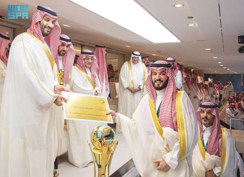 في ليلة ختام الموسم الرياضي وبتشريف من القيادة -حفظها الله- اختتم الموسم الرياضي الأطول والاستثنائي والتاريخي بتشريف سمو ولي العهد الذي توج الفريق الهلالي بكأس خادم الحرمين الشريفين، فكان عرساً رياضياً كبيراً وكرنفالاً احتفالياً أسعد كل من حضر وشاهد تلك الاحتفالية الرائعة التي شهدتها أرض إستاد الملك عبدالله الدولي في جدة «الجوهرة»، فكان الهلال زعيم البطولات وعاصمة الإنجازات هو عريسها المتوج بالذهب بلا منافس والمتوشح هذا الموسم بذهب كل البطولات المحلية باحتكاره لبطولات الكؤوس الثلاث كأس خادم الحرمين الشريفين في ليلة العرس الكبير التي ازدانت بحضور سمو ولي العهد نيابة عن راعي المباراة.