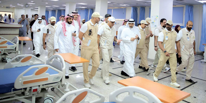 وبدأ معاليه جولته بزيارة مستشفى شرق عرفات، حيث اطّلع على سير العمل في عدد من أقسام المستشفى، إضافة إلى زيارة مستشفى جبل الرحمة ومستشفى نمرة والمستشفى الميداني ومركز الخدمات الطبية الشرعية بالمعيصم، ومقر نوبكو والأرضيات المرنة والطلاء الخافض للحرارة في عرفة والمرحلة الأولى من مشروع تطوير مسار المشاة بمزدلفة من تنفيذ الهيئة الملكية لمدينة مكة المكرمة والمشاعر المقدسة.