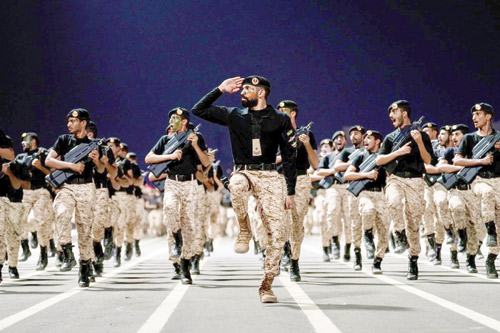واطلع سموه على العرض العسكري الذي أجري تحت شعار «يسر وطمأنينة»، وذلك لال زيارة سموه لميدان قوات الحرس الوطني في الشرائع أمس الأول.