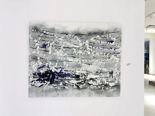 برزت الفنانة التشكيلية ندى العلي منذ عدة سنوات بأعمالها التجريدية المميزة الذي جمعت بها بين عفويتها وأحاسيسها بحرية فنانة تدرك ما تريد وتسخر ألوانها وخطوطها نحو هدف معين وتبرز من خلال أعمالها رسائل تحمل ثقافة عالية حيث اختارت في هذا المعرض مجموعة أعمال جمعت بين الأبيض والأسود من خلال ألوان ووسائط أخرى ذات ملامس مميزة تعطي المشاعر الصادقة لديها حيث قالت عن أعمالها المشاركة: دواخل الشيء النقية كيف يمكن أن تكون سبيلا للخروج من عوالم مليئة بالتعقيد والمبالغة ضمن سياق ذلك الإحساس وتأثيره أنتجت هذه المجموعة من خلال زرع المواد وازالتها وسط لانهائية من الممرات والأسطح الخشنة أعود بذلك نحو الأصل من الداخل.