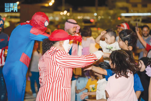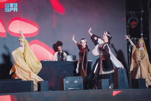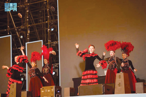 واستمتع الحضور بمشاهدة العروض الفلكلورية والثقافية لعدد من البلدان العربية والأجنبية، وسط تفاعل كبير بما تقدمه الفرق الاستعراضية، مشيدين بما تم عرضه من خلال باقة من الفلكلوريات المصرية والإسبانية والهندية والفرنسية والجورجية، بالإضافة لفلكلور الطاؤوس، والدبكة، والعروض المضيئة، وعرض الأبطال، والعديد من ألعاب وبرامج الأطفال المتنوعة، وكذلك عربة المأكولات، والضيافة السعودية ، وعروض المهرج، والهيب هوب.