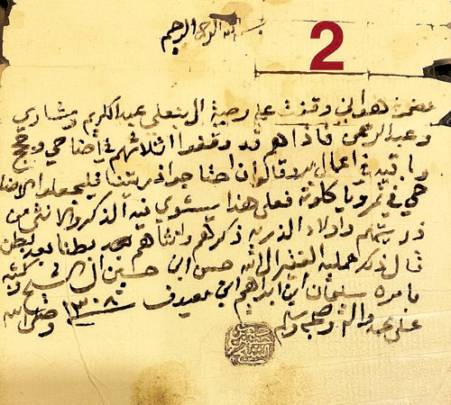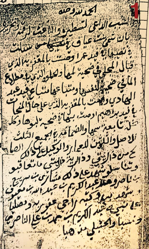 - الشيخ عبدالله بن عيبان بن عيبان بن عضيب، من كتاب الوثائق سنة 1245هـ.