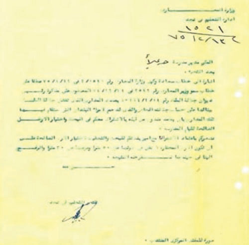 تقول الوثيقة المرفقة: المكرم/ مدير مدرسة حريملاء، بعد التحية، ( ) العام الدراسي وشيك الانتهاء، ومدرستكم لاشك أنها زاولت نشاطاً ثقافياً واجتماعياً؛ لذا نرغب منكم كتابة تقرير مفصّل عن النشاط الثقافي والاجتماعي، وليكن ذلك سريعاً.. مدير التعليم في نجد (توقيع).