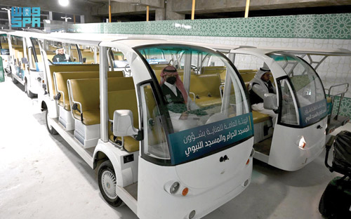 وتُعد عربات قولف الترددية التي وفرتها الهيئة العامة للعناية بالمسجد الحرام والمسجد النبوي إحدى صور الاهتمام والعناية بالأشخاص ذوي الإعاقة وكبار السن, حيث يستطيع القاصد الاستفادة منها عبر نقله من وإلى أبواب المسجد الحرام.