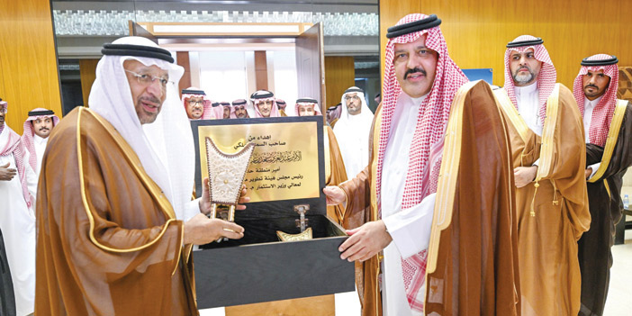 ورحب سموه بمعالي الوزير في زيارته الاستثنائية للمنطقة الذي أثرى خلالها الجميع بمحاور النقاش والأطروحة الموجودة بالمنطقة، منوهاً بدعم وحرص الدولة بقيادة خادم الحرمين الشريفين الملك سلمان بن عبد العزيز آل سعود، ودفع وتمكين سمو ولي عهده الأمين -حفظهما الله- اللذين يُثريان كل هذه الأطروحات ويجعلان منها فرصا ممكنة قابلة للتطبيق من القطاعات المعنية التي من أهمها وزارة الاستثمار في سبيل تمكين الأداء الاستثماري والفرص الاستثمارية وتحفيز القطاع الخاص، وكذلك الممكنات من الأجهزة المعنية في القطاع العام.