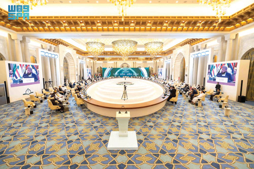 وافتتح المؤتمر بكلمة المملكة العربية السعودية التي ألقاها معالي وزير الشؤون الإسلامية والدعوة والإرشاد الرئيس التنفيذي للمؤتمر الشيخ الدكتور عبداللطيف بن عبدالعزيز آل الشيخ رحب خلالها بالوفود المشاركة في المؤتمر، منوهاً بالرعاية الكريمة من مولاي خادم الحرمين الشريفين الملك سلمان بن عبدالعزيز آل سعود وبالمتابعة المستمرة من سمو ولي عهده الأمين رئيس مجلس الوزراء صاحب السمو الملكي الأمير محمد بن سلمان -أيدهم الله- لأعمال المؤتمر، مبيناً النهج الراسخ للمملكة في جمع الكلمة، ووحدة الصف وتفعيل مبدأ التشاور والتعاون على البر والتقوى ولا سيما في ظل المتغيرات المتسارعة التي تستوجب على المعنيين بالشأن الإسلامي المبادرة لحفظ الثوابت وترسيخها ومواجهة المتغيرات والتعامل معها بعلم وحكمة ورفق، وتنقية الخطاب الديني مما ألحق به من الفهم المغلوط إما غلواً وتشدداً أو جفاء وانحلالا».