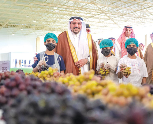 على صعيد ثان أشاد سموه أمير منطقة القصيم، بجهود جميع القطاعات والأهالي والمزارعين لاستمرار نجاحات مهرجان العنب بالقصيم.