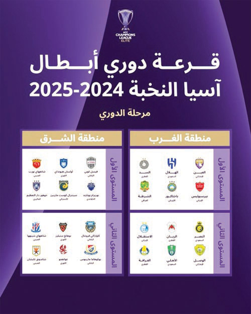 وجاء الهلال «كبير آسيا» على رأس المستوى الأول في منطقة الغرب، في حين تم تصنيف النصر والأهلي ضمن المستوى الثاني.