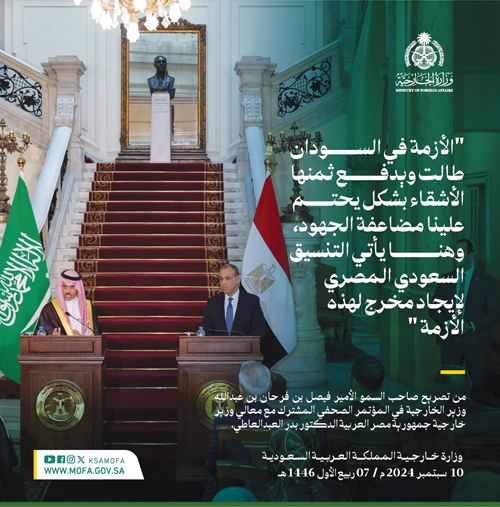 وأعرب عن تقدير المملكة لجهود جمهورية مصر العربية في استقبال وتنظيم وإدخال المساعدات الإنسانية إلى قطاع غزة، قائلًا: «ما نراه من كارثة إنسانية، ومن استمرار في تعطيل وعرقلة الجانب الإسرائيلي لوصول تلك المساعدات، أصبح جريمة حرب بلا مهادنة».
