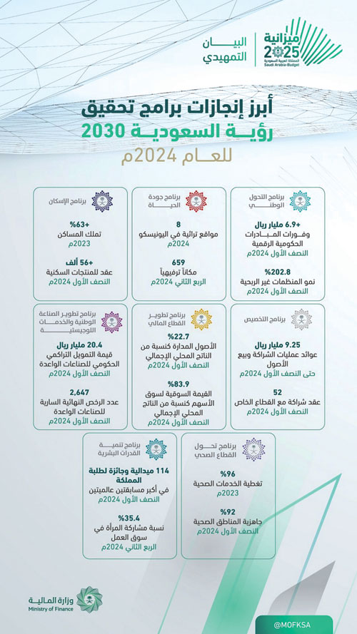 كشف تقرير أداء»رؤية 2030» تقدماً كبيراً في مؤشرات اقتصادها، وذلك بعد مرور 8 أعوام على إطلاقها في 25 أبريل 2016.