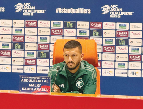 من جانبه أكد لاعب منتخبنا الوطني الأول عبدالإله المالكي أنهم كلاعبين حريصون كل الحرص على الظهور بشكل مشرف خلال اللقاء هذا المساء وتحقيق الفوز في المنعطف المهم في المشوار للأخضر في هذه التصفيات وقال: جميعنا كلاعبين متحمسون لهذه المباراة خاصة وأنها تلعب على أرضنا ووسط مساندة من جماهيرنا التي سأحضر بكل قوة ونحن كلاعبين نطمح إلى تحقيق النقاط الثلاث وتحقيق الفوز، متمنيا الشفاء للنجم فهد المولد الذي يعد لاعبا مهما لدينا بروحه الجميلة.