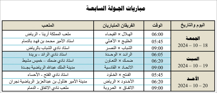 سجل بعد نهاية الجولة السادسة الماضية (21) هدفاً، وبذلك يصبح إجمالي الأهداف المسجلة حتى الآن (146) هدفاً، ويأتي فريق الهلال في المقدمة من حيث القوة الهجومية برصيد 18 هدفاً يليه الاتحاد بـ 17 هدفاً، ويأتي الثلاثي الشباب والنصر والقادسية الأقوى دفاعياً حيث لم يلج مرمى كل فريق سوى 3 أهداف خلال ست جولات، بينما الوحدة الأضعف دفاعاً حيث ولج مرماه 16 هدفاً من 6 مباريات.