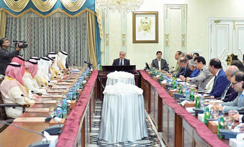 وأشاد دولة شهباز شريف بعمق العلاقات الأخوية والتاريخية التي تجمع البلدين الشقيقين، مقدمًا شكره لخادم الحرمين الشريفين الملك سلمان بن عبدالعزيز آل سعود، وصاحب السمو الملكي الأمير محمد بن سلمان ولي العهد رئيس مجلس الوزراء على الدعم الراسخ والمتواصل لباكستان وتعزيز وتعميق المزيد من علاقات التعاون القائمة بين البلدين.