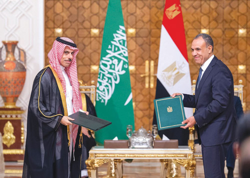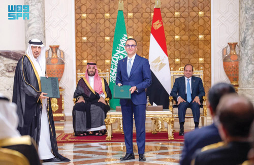 شهد سمو ولي العهد وفخامة الرئيس المصري توقيع محضر تشكيل مجلس التنسيق الأعلى السعودي - المصري برئاسة سمو ولي العهد وفخامة الرئيس المصري، وقعه من الجانب السعودي صاحب السمو الأمير فيصل بن فرحان بن عبدالله وزير الخارجية ومن الجانب المصري معالي وزير الخارجية الدكتور بدر عبدالعاطي.