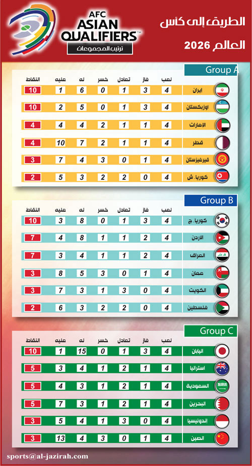 كما انتهت مباراة اليابان وأستراليا بالتعادل 1-1 وتمكنت كوريا الجنوبية من الفوز على العراق بنتيجة 3-2 وفازت الصين على إندونيسيا بنتيجة 2-1 وتمكنت أوزباكستان من الفوز على الإمارات بنتيجة 1-0 وفازت قرغيزستان على كوريا الشمالية بنتيجة 1-0 وفازت إيران على قطر بنتيجة كبيرة 4-1 وتمكنت فلسطين من التعادل مع الكويت بنتيجة 2-2 وفازت الأردن بنتيجة كبيرة على المنتخب العماني بنتيجة 4-0.