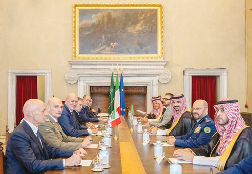 استقبل معالي وزير الدفاع الإيطالي جويدو كروسيتو، في قصر مداما بالعاصمة الإيطالية روما، أمس، صاحب السمو الملكي الأمير خالد بن سلمان بن عبدالعزيز وزير الدفاع.
