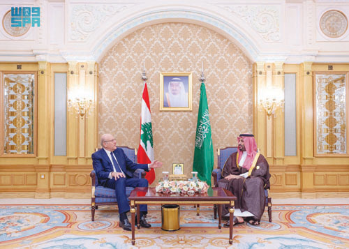 كما التقى سمو ولي العهد في الرياض أمس دولة الرئيس نجيب ميقاتي رئيس مجلس الوزراء اللبناني، وذلك على هامش انعقاد القمة العربية والإسلامية غير العادية.