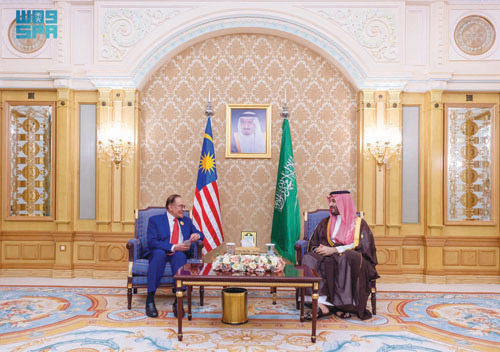 كما التقى سمو ولي العهد في الرياض أمس دولة السيد أنور إبراهيم رئيس الوزراء الماليزي، وذلك على هامش انعقاد القمة العربية والإسلامية غير العادية.