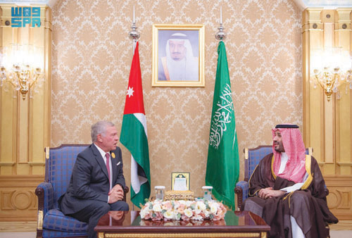 كما استقبل سمو ولي العهد في الرياض أمس جلالة الملك عبدالله الثاني ابن الحسين ملك المملكة الأردنية الهاشمية، وذلك على هامش انعقاد القمة العربية والإسلامية غير العادية.وجرى خلال اللقاء استعراض العلاقات الأخوية بين البلدين الشقيقين وفرص تطويرها في مختلف المجالات، إضافة إلى بحث عدد من الموضوعات المدرجة على جدول أعمال القمة، وتطورات الأوضاع في فلسطين ولبنان والجهود المبذولة بشأنها.حضر اللقاء، صاحب السمو الملكي الأمير عبدالله بن بندر بن عبدالعزيز وزير الحرس الوطني، وصاحب السمو الملكي الأمير خالد بن سلمان بن عبدالعزيز وزير الدفاع، وصاحب السمو الأمير فيصل بن فرحان بن عبد الله وزير الخارجية، ومعالي وزير الدولة عضو مجلس الوزراء مستشار الأمن الوطني الدكتور مساعد بن محمد العيبان، وسفير خادم الحرمين الشريفين لدى المملكة الأردنية الهاشمية نايف بن بندر السديري والوفد المرافق لملك المملكة الأردنية الهاشمية.