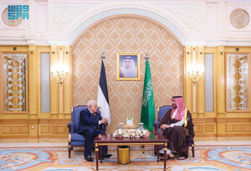 كما التقى سمو ولي العهد في الرياض أمس فخامة الرئيس محمود عباس رئيس دولة فلسطين، وذلك على هامش انعقاد القمة العربية والإسلامية غير العادية.