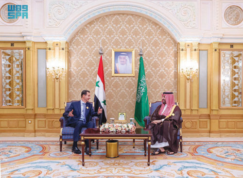 كما التقى سمو ولي العهد في الرياض أمس فخامة الرئيس بشار الأسد، رئيس الجمهورية العربية السورية، وذلك على هامش انعقاد القمة العربية والإسلامية غير العادية.