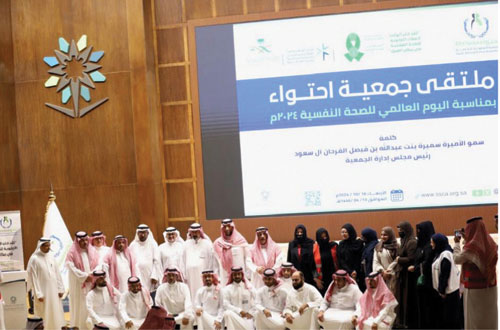 ففي حفل تدشين (الكتاب) أقيم حفل للتعريف بمرض الفصام بمناسبة اليوم العالمي للصحة النفسية، قدمت لنا فبه المدير التنفيذي د منال صوان عرضا تعريفيا متكاملا عن عمل الجمعية بإحصائيات وأرقام، ويعكس هذا العرض رؤية الجمعية في السعي لتحقيق جودة حياة مرضى الفصام وأسرهم من خلال برامج وشراكات فاعلة وفرق عمل احترافية ونظام محوكم متميز وبيئات جاذبة. والطموح المستقبلي للجمعية في إقامة منتجع خاص لفترة نقاهة المريض. لقد أعجبت كثيرا بموقف سمو الأميرة رئيس مجلس الإدارة في مشاركتها فريقها كل التفاصيل وفي إعطاء اهتمامها لكل المساهمين في تنظيم ملتقى احتواء بمن فيهم الفرق المتطوعة، فكانت تسير وترحب بالجميع وتصافح الجميع برعاية أمومية مدهشة، وكأنها وردة تفوح عطرا وجمالا.