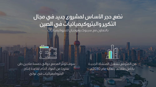 وأوضح الرئيس للتكرير والكيميائيات والتسويق في أرامكو السعودية محمد القحطاني، أنه من خلال علاقة أرامكو الراسخة مع كل من شركتي سينوبك، وفوجيان للبتروكيميائيات، سيسهم بدء هذا المشروع اليوم في تعزيز محفظة الشركة الاستثمارية التي تشهد تناميا في الصين، كما ستورد أكثر من مليون برميل يوميا من الخام إلى منشآت تحويل المواد الكيميائية في الصين، مشيرا إلى أنه سيعزز هذا دور أرامكو بصفتها شريكا موثوقا به وطويل الأمد في المساهمة في ازدهار الصين، كما يدعم هذا المشروع أيضا استراتيجيتها لتحويل السوائل إلى مواد كيميائية، إذ نعتزم من خلاله توجيه المزيد من الخام للمساعدة في تلبية الطلب العالمي المتزايد على البتروكيميائيات.